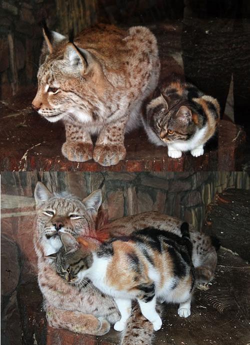 幼い頃から一緒に育ったミーアキャットを可愛がる雌ライオンのZinzi。Zinziは、野生の母ライオンが育児放棄して放置されていたことから動物園へ連れてこられたらしい。同じ頃、ミーアキャットのBobも生まれ、Zinziと一緒に育ったらしい。