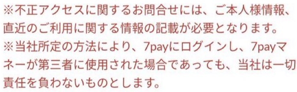 7Payの規約では「当社規定の方法でログインし、第三者に利用された場合、一切責任を負わない」そうで……。