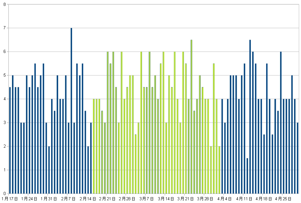 青い棒が飲んでない期間で、黄緑が飲んだ期間。
