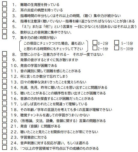 フィッシャーの聴覚情報処理チェックリストと呼ばれる診断方法もあります。